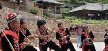 葫芦笙悠扬婉转、口弦声余音绕梁,表现拉祜族劳动场面的“丰收摆舞”充满欢腾和激情,使人难以忘怀。芦笙舞又称为跳歌,是西双版纳拉祜族的一种民间舞蹈。拉祜族的乐器主要有三弦、芦笙和口弦。民间歌舞都以芦笙和三弦作伴奏。因此,人们把这种集体性自娱舞蹈称为芦笙舞。