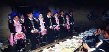 宴客有号称”瑶家三礼”的”敬茶洗澡接风酒;全寨公宴贵宾的”碗酒串肉”;山珍野味杂陈的”献鲜”;以名珍”水龙肠”接风的”龙肠席”等。此外,还有调解民事纠纷的”上门挂红酒”,宣布断交撵人的”炒豆煮蛋”。其中,不少食俗颇有意趣,例如求婚带一包肉和两葫芦米酒,女方同意便收肉不同意则刺破葫芦;择婿常有”埋蛋”之举,视其变化决定取舍;姑娘出嫁向乡邻分赠焦黄豆;离婚仪式为”破竹筒”,离婚双方各提一筒酒,交换饮毕砍破竹筒后就此和气分手。