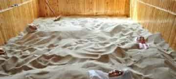 另外,沙子中含有钙、镁、钾、钠、硒、锌、锶等微量元素及丰富的磁铁矿物质。磁铁矿物质经过烈日照射,产生磁场作用于人体,与微量元素协同作用,成为集磁疗、热疗、光疗和按摩于一体的综合疗法,因此能治疗疲劳、肢体酸困、慢性腰腿痛、坐骨神经痛、脉管炎、慢性消化道疾病、肩周炎、软组织损伤、高血压等。尤其是沙子中的微量元素对治疗风湿性疾病起到了关键的作用。