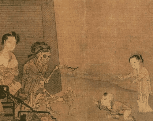 宋朝最出名的一幅画应该就是北宋画家张泽瑞的《清明上河图》了,详细得为大家展现了宋朝的风俗人情以及市井生活,堪称宋代民俗画发展的巅峰。除了张泽瑞之外,宋代还涌现了大量杰出的民俗画画师,南宋的宫廷画师李嵩就是其中一位。李嵩的风俗画大多表现下层社会生活,他也会创作表现农民生活的画作,代表作有《货郎图》、《春溪渡牛图》、《西湖图》等,其中《骷髅幻戏图》的寓意至今都没有定论,加剧了这幅画的神秘色彩,下面为大家介绍一下李嵩的《骷髅幻戏图》。